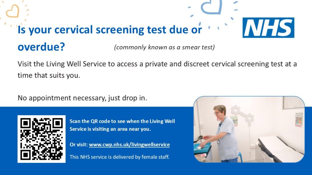 Visit the Living Well Service to access a private and discreet cervical screening test at a time that suits you.